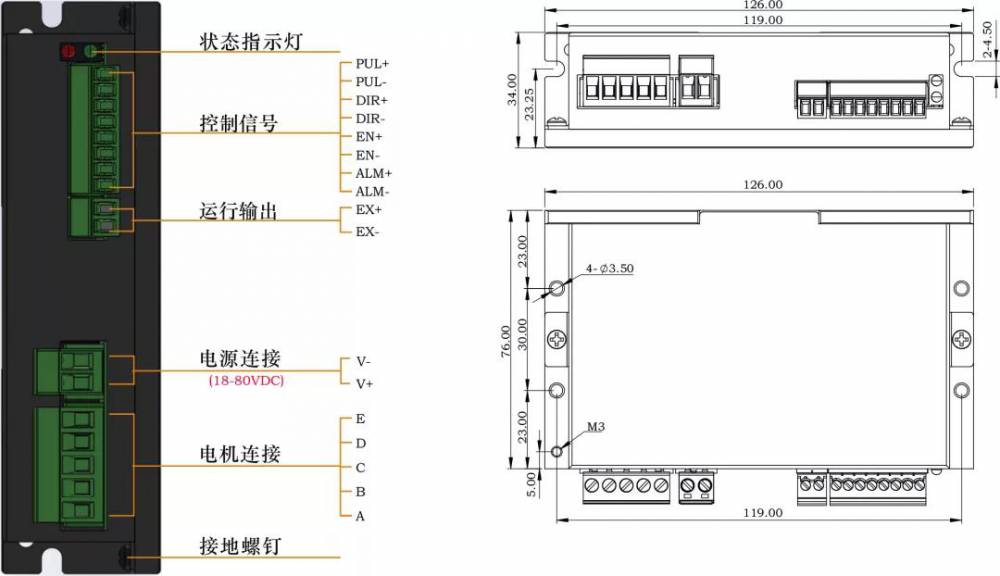 本系列驱动以类似伺服的控制原理,采用独特的电路设计,使电流控制平滑精准,电机在低细分下也能运行平稳,低噪音低振动。外置32档等角度恒力矩细分,细分125000脉冲/转,光耦隔离差分信号输入,抗干扰能力强,具有过压、欠压、过流保护等功能,可***提高设备性能。